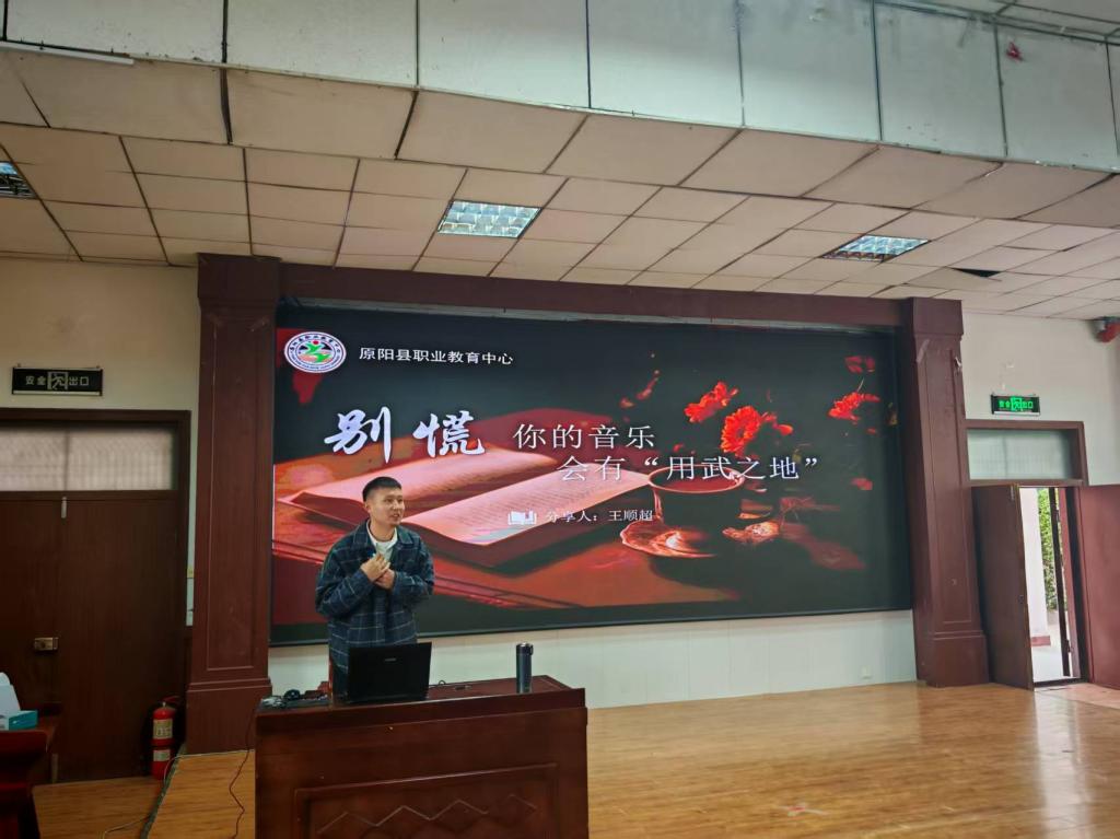 来自原阳县职业教育中心的王顺超老师以《别慌,你的音乐会有用武之地》为题,拉开了分享会的序幕。他结合自身在职业教育的特殊土壤中开展音乐教学的经历,生动阐述了音乐教育在塑造学生人格、提升综合素养方面的不可替代作用。这场分享为正处于职业迷茫期的见习同学们注入了强心剂,让他们看到了音乐教育广阔而多元的价值空间。