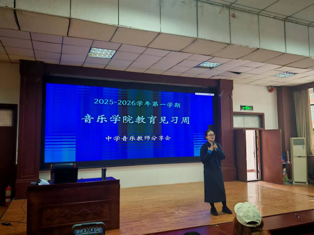为深化音乐师范生对基础教育的理解,有效提升教育见习的实践成效,在本次教育见习周期间,我们特别策划并成功举办了中学音乐教师教学经验分享系列活动。本次活动于10月20日至24日密集开展,先后邀请三位来自教学一线的优秀中学音乐教师来校,为正处于参加教育见习周的同学们带来了三场紧扣教学实际、内容丰富的专题分享。