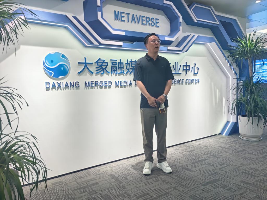 在大象融媒相关同志陪同下,王风雷一行首先参观了大象融媒数字产业中心,与专业技术人员探讨了AI时代如何用科技有效赋能音乐舞蹈人才培养。在座谈交流中,王风雷与河南广电融媒教育科技有限公司总经理刘春艳、经营总监徐宁围绕学科建设、专业设置、人才培养等内容进行了深入交流,分享了在艺术教育领域的教学经验与实践成果。