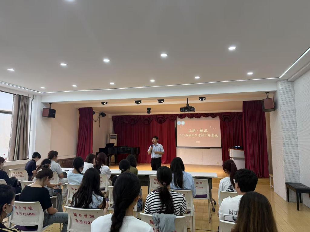音乐学院党委副书记程洪涛在考研分享大会总结时,对积极分享经验的同学表示感谢,充分肯定此次活动的意义。鼓励在场同学以优秀学长学姐为榜样,明确目标、合理规划,在考研路上坚定信念、奋勇拼搏。同时表示学院将全力提供支持,助力学子逐梦上岸。