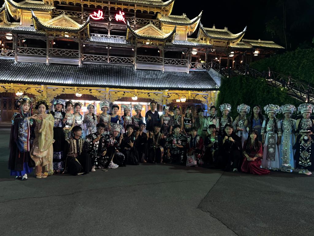在凤凰古城,同学们对古城传统民间音乐展开考察,感知生活中的音乐韵律。他们穿梭于街巷之间,向街边从事手工劳作的苗族阿婆虚心求教,收集珍贵的民间音乐素材;走进古城内的民谣酒吧,沉浸式感受独特的音乐文化氛围;还与当地民谣歌手展开深入交流,汲取民族音乐创作的宝贵经验,全方位汲取湘西音乐文化的丰厚滋养。此外,全体师生还观看了由文学名著《边城》改编的大型音乐剧。该剧深度挖掘湘西土家族苗族地区的文化特色,巧妙提炼傩舞、对山歌等极具地域风情的音乐舞蹈元素,同时融合声、电、光、水等现代舞台技术,将民族音乐舞蹈的独特魅力展现得淋漓尽致,为师生们带来一场震撼心灵的视听盛宴。