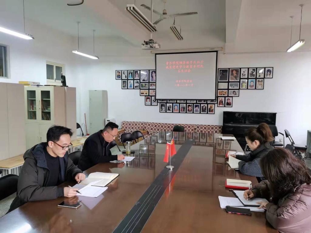 根据《中共河南省纪委机关 中共河南省委组织部 中共河南省委党史学习教育领导小组转发<中共中央纪委机关 中共中央组织部 党史学习教育领导小组关于开好党史学习教育专题民主生活会的通知>的通知》(豫组〔2021〕7号)要求,音乐学院领导班子及班子成员党史学习教育专题民主生活会于2022年1月10日下午15点在A04-505室召开。会议由音乐学院党委书记梁记安主持,音乐学院全体班子成员参加。