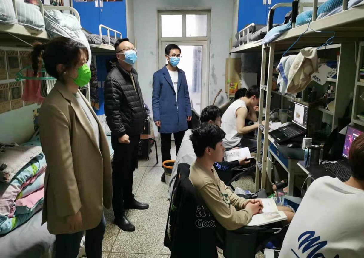 在走访中,领导老师详细询问了同学们的日常学习和生活情况,同时提醒同学们要积极配合疫情防控工作,注意身心健康,加强锻炼,努力改善宿舍卫生状况;要强化安全意识,不使用违规电器,营造“安全、舒适、文明”的住宿环境;深入了解学生线上上课情况以及生活中存在的困难,积极解决存在的实际问题。老师们热情的话语、亲切的问候,让学生们倍感温馨。学生们纷纷表示会牢记老师们的教诲,严格遵守学校疫情防控的要求,克服困难,认真完成线上学习内容。