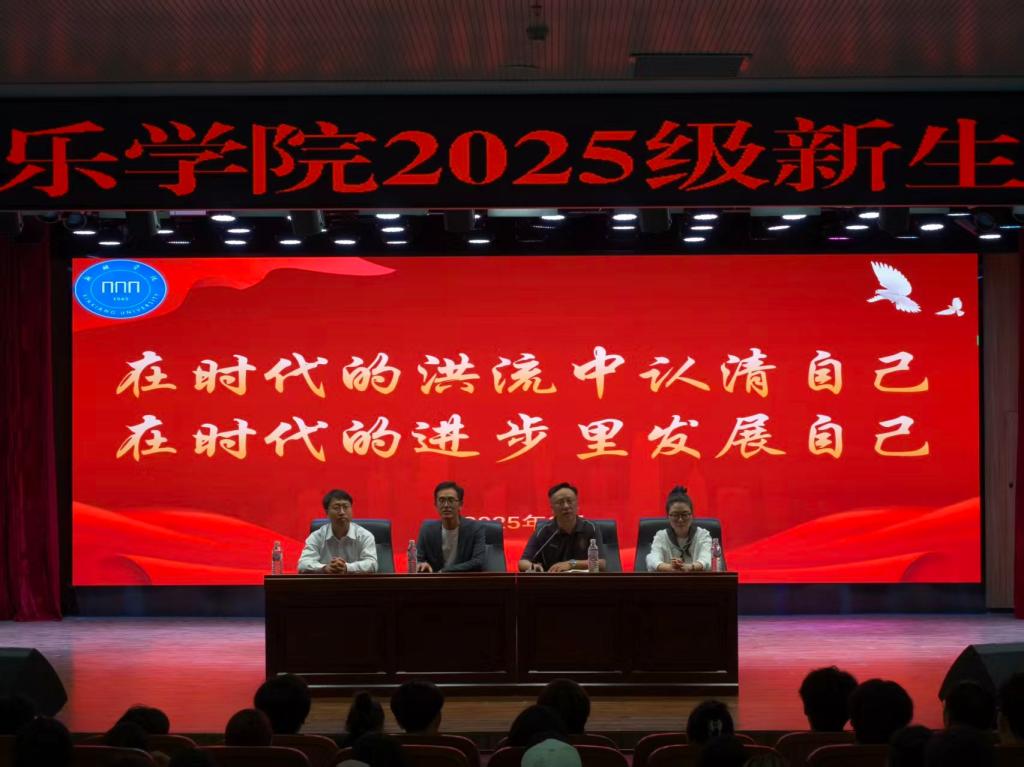 桂香漫染新程路,青春逐梦正当时。9月29日下午1时,音乐学院2025级新生开学典礼在行政楼一楼文化艺术中心隆重举行。党委书记梁记安、院长王风雷、党委副书记程洪涛、副院长孙璟娜及全体辅导员与2025级新生齐聚一堂,共同翻开大学生活的崭新篇章。典礼由学院团委书记刘毅主持,现场暖意融融,满含对新生的期许。