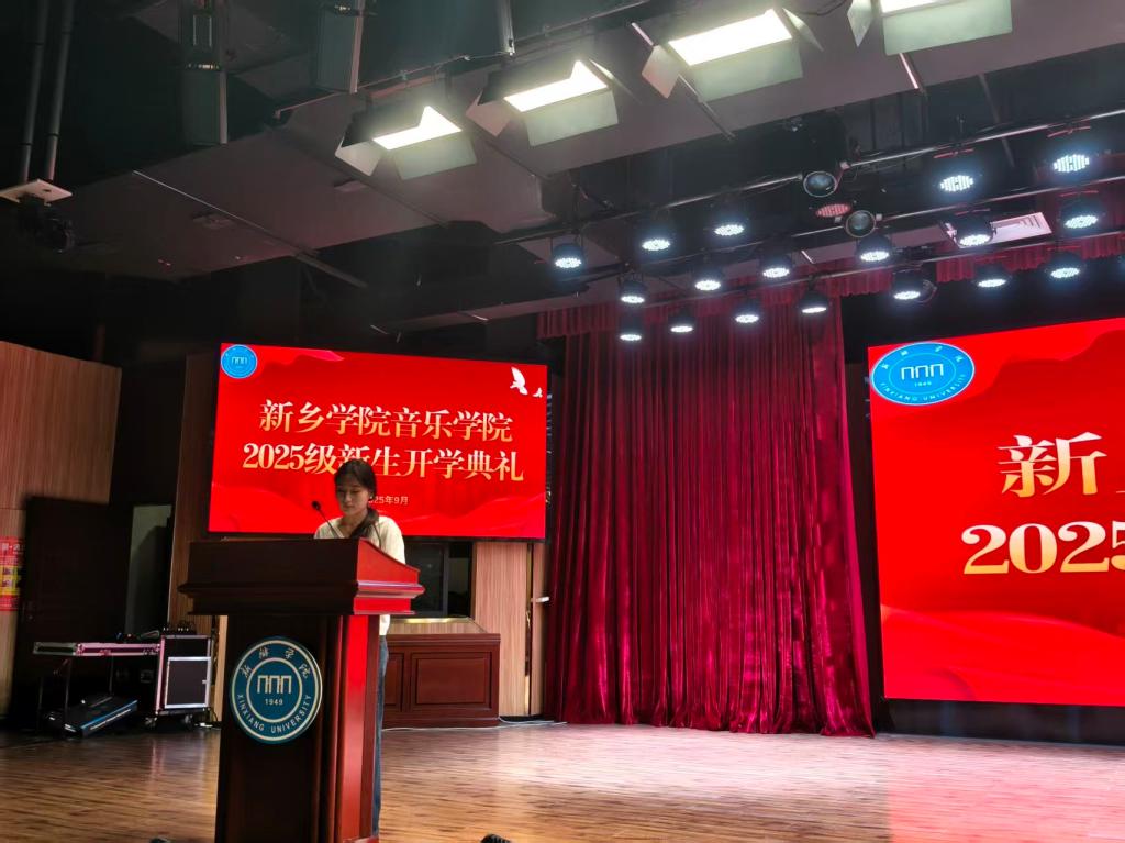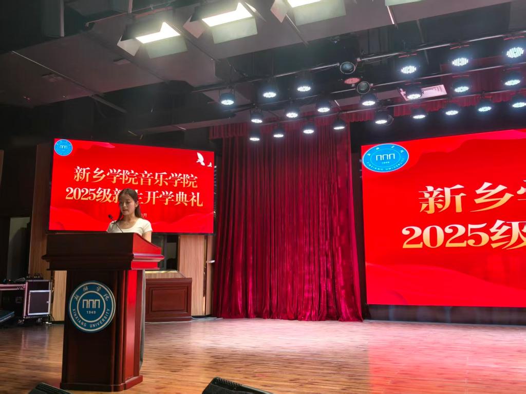 典礼伊始,全体师生肃立齐唱国歌,激昂旋律传递深厚家国情怀,开启这场青春与梦想交织的仪式。随后,2025级辅导员冯鹏威老师温情登台,以亲切的话语、真挚的关怀为新生注入温暖力量,瞬间拉近了师生间的距离;2022级舞蹈学专业司钰同学分享了自己的大学成长故事,用亲身经历点燃学弟学妹的逐梦热忱,让榜样的力量直抵人心;2025级新生代表高子涵则坚定表态,誓言以不懈奋斗深耕艺术领域,用实际行动诠释新时代青年的青春担当。