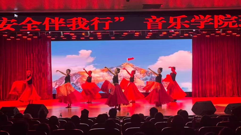 为充分展现青年学子昂扬向上的蓬勃朝气,切实强化学生安全意识,9 月 29 日下午 18:30,音乐学院2023级舞蹈学1班于学校行政楼文化艺术中心举办"青春逐梦路,安全伴我行"班级风采大赛。学院班子成员、辅导员、学生代表共400余人到场观看。