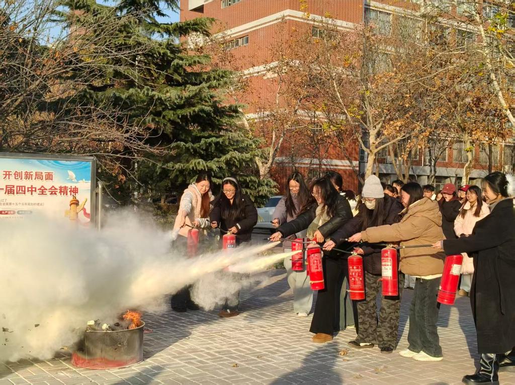 活动特邀河南省消防协会义务消防科普宣传服务队专职教员张迪主讲。张迪结合高校教室、宿舍、实验室等人员密集区域特点,围绕“一懂三会”“四个能力”,剖析典型火灾案例,讲解火灾预防、报警、扑救及逃生知识,以真实事故警示强化安全意识,普及实用防护技能。理论讲解后,在学校消防科统筹配合下,逃生与灭火演练有序开展。逃生演练中,师生依规迅速、有序撤离;灭火演练时,大家在教员指导下,规范使用灭火器扑救模拟初起火灾,将理论转化为实操能力。