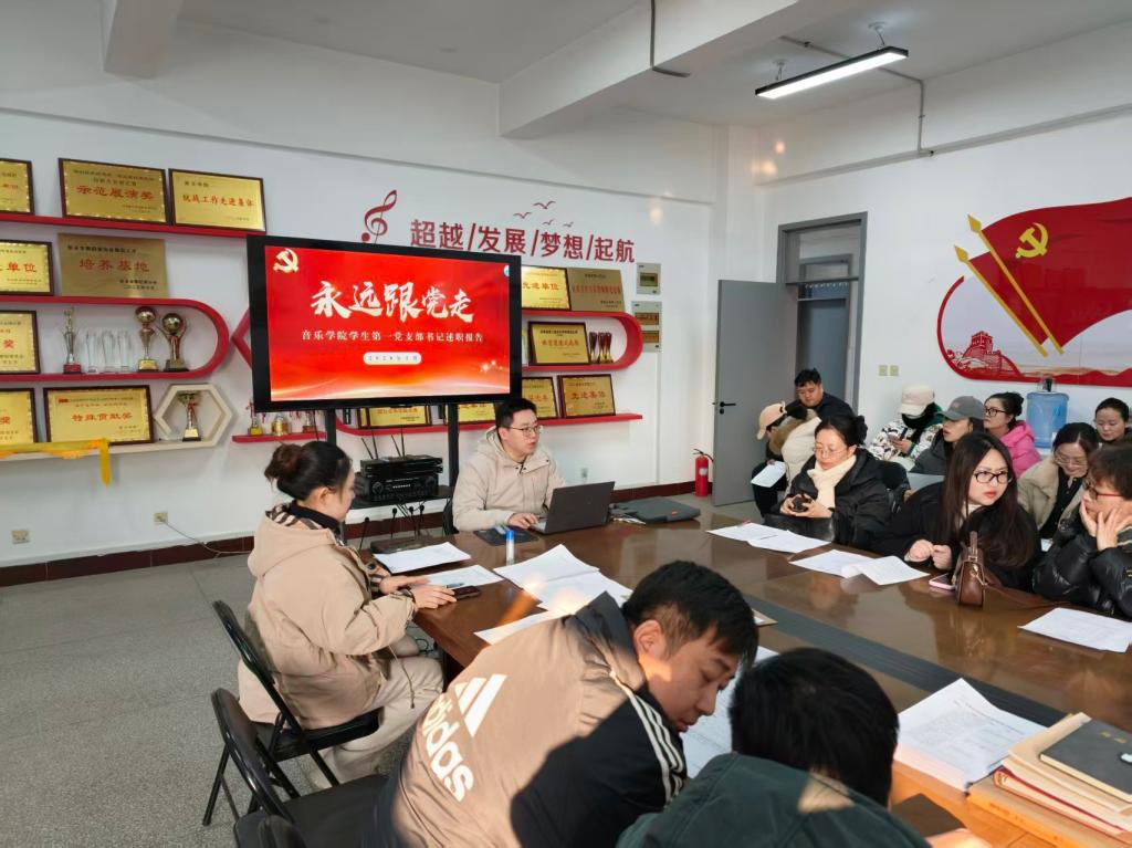为深入学习贯彻新时代党的建设总要求,全面检验基层党支部工作成效,压实支部书记党建第一责任人职责,1月23日,音乐学院在A04-202办公室召开支部书记述职考核会议。会议按照述职述廉、民主评议、点评总结的流程有序推进,学院领导班子成员、全体党员及师生代表参加会议,共同对两个党支部的年度工作进行全面检视与综合评议。